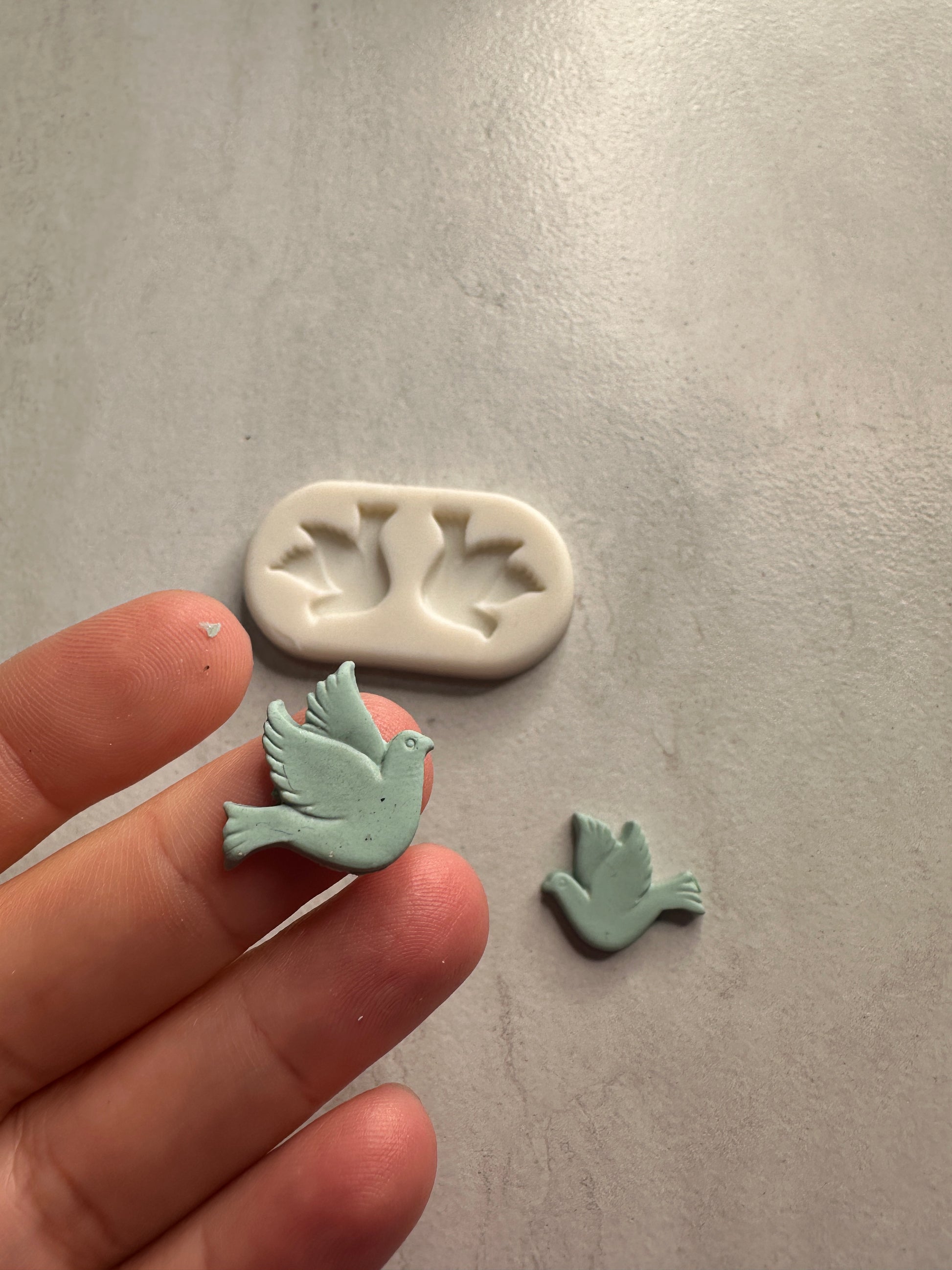 Double Dove stud button bead bird polymer clay mold